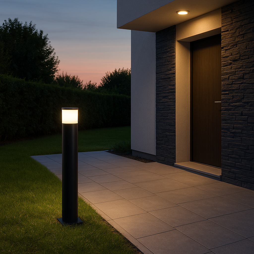 Baliza para jardín compatible con bombillo MR-11, 3W, luz cálida 3000K. Color negro. Modelo JT-15227.