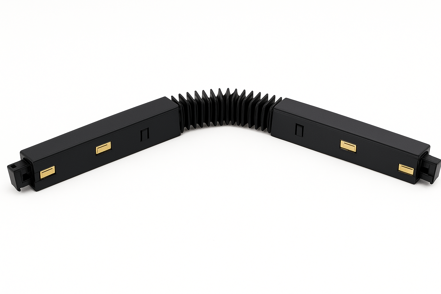 Conector magnético flexible (modelo T22U03) para unir tramos de riel con posibilidad de ángulo. Longitud 320mm, sección 18x18mm.