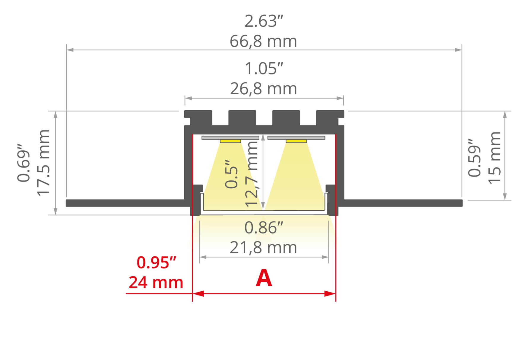 - Montaje en panel de yeso de 16 mm (0,63″)